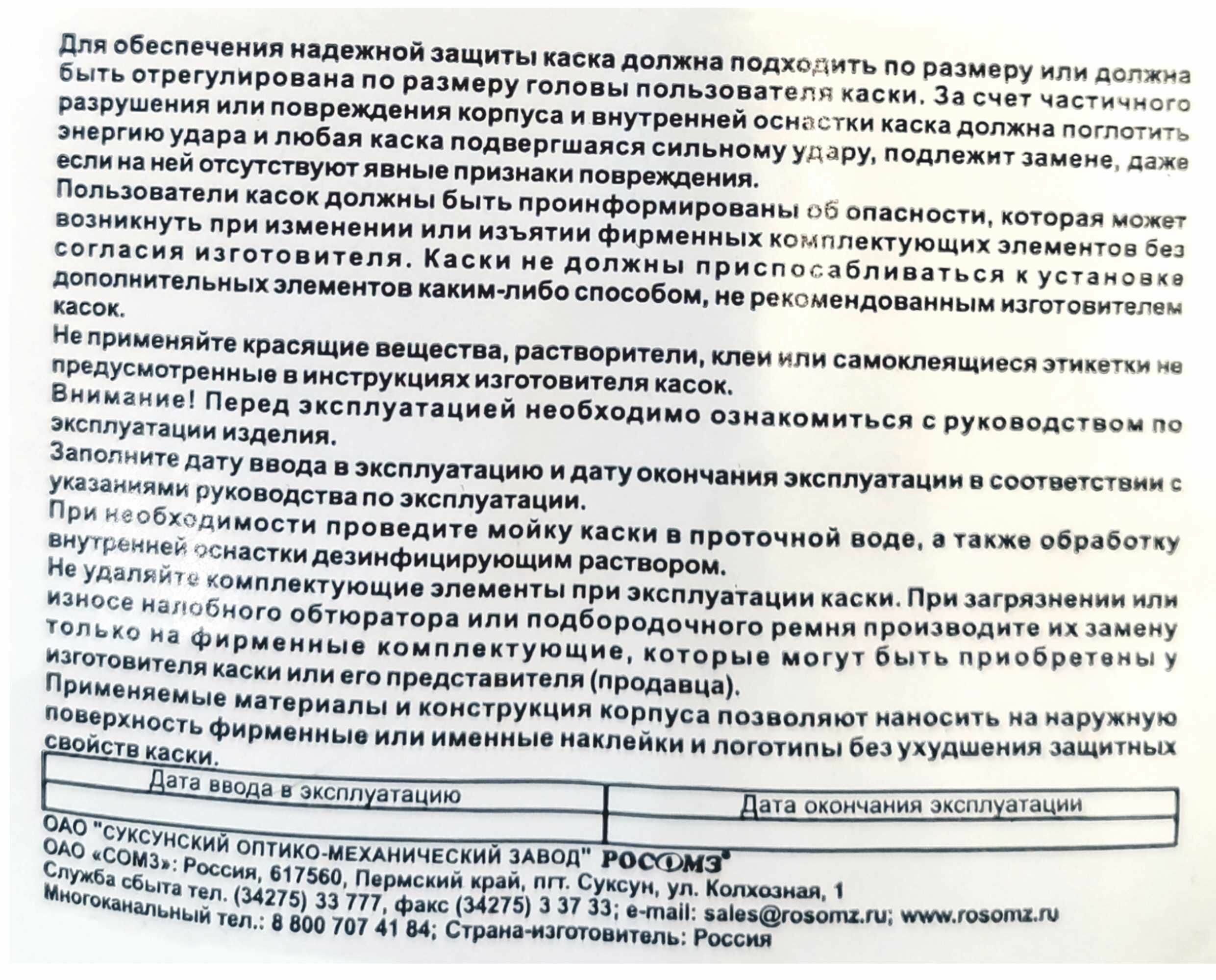 | Вид средства защиты | каска |