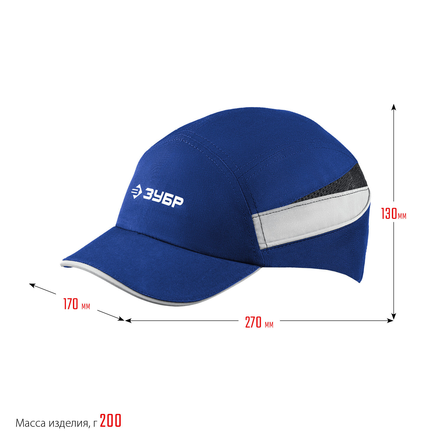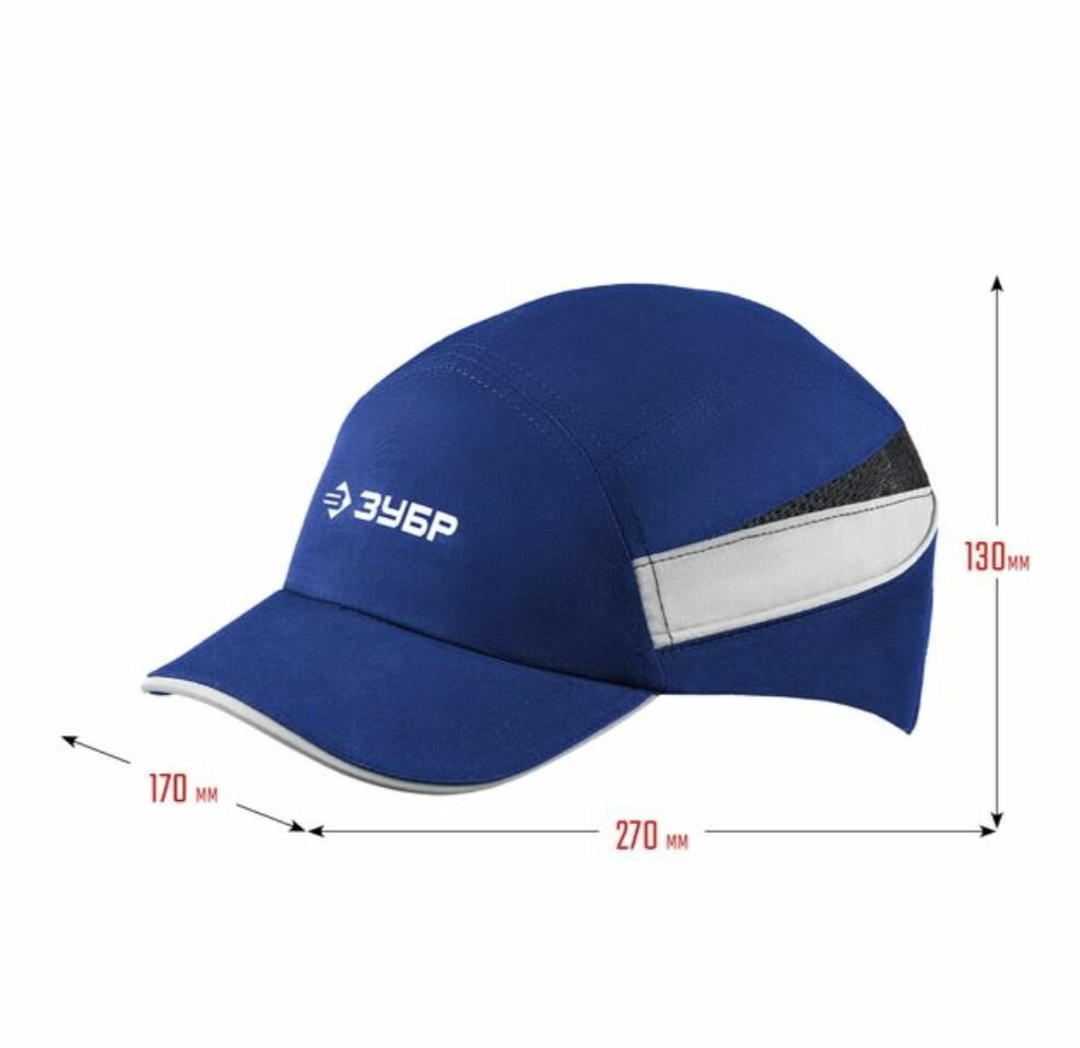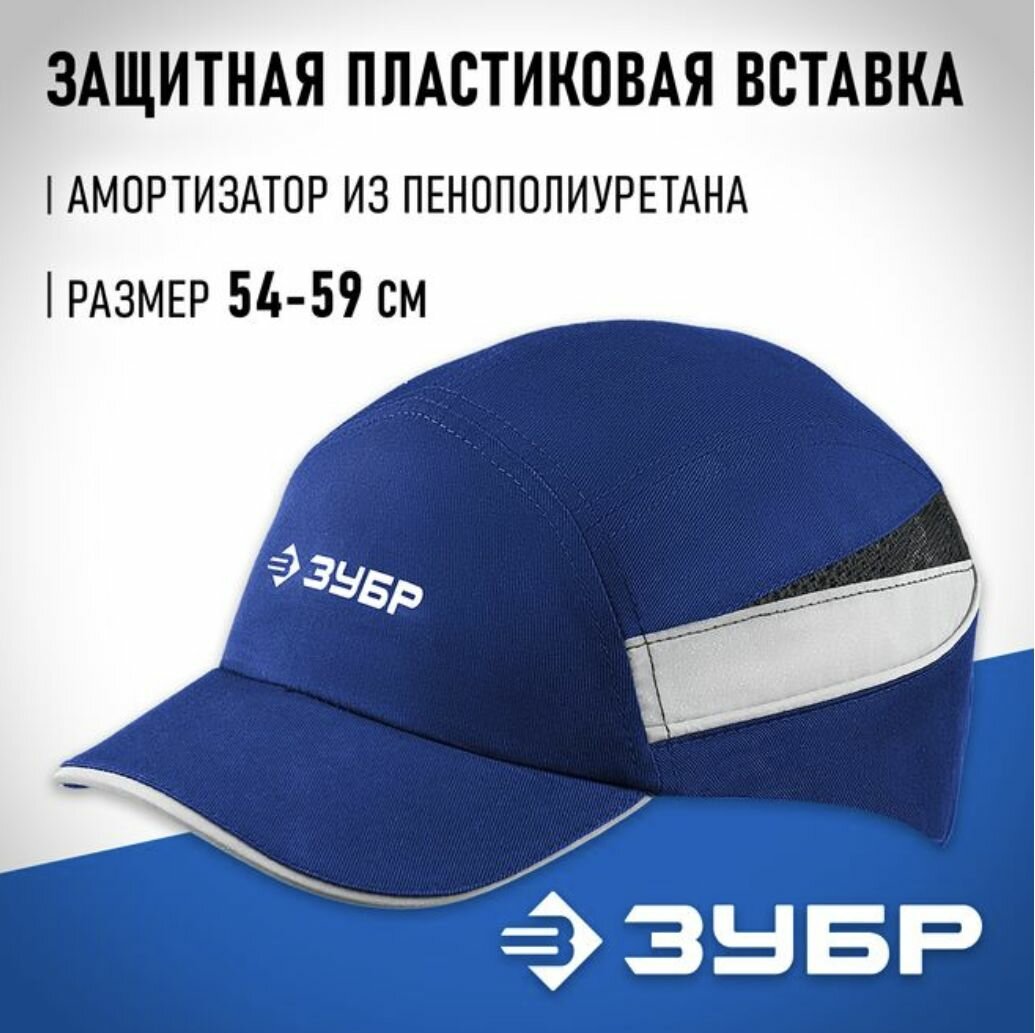Каскетка защитная, синяя, ударопрочный корпус, козырёк укороченный, светоотражающие вставки, легионер, 55мм, размер от 54 до 59см, ЗУБР
