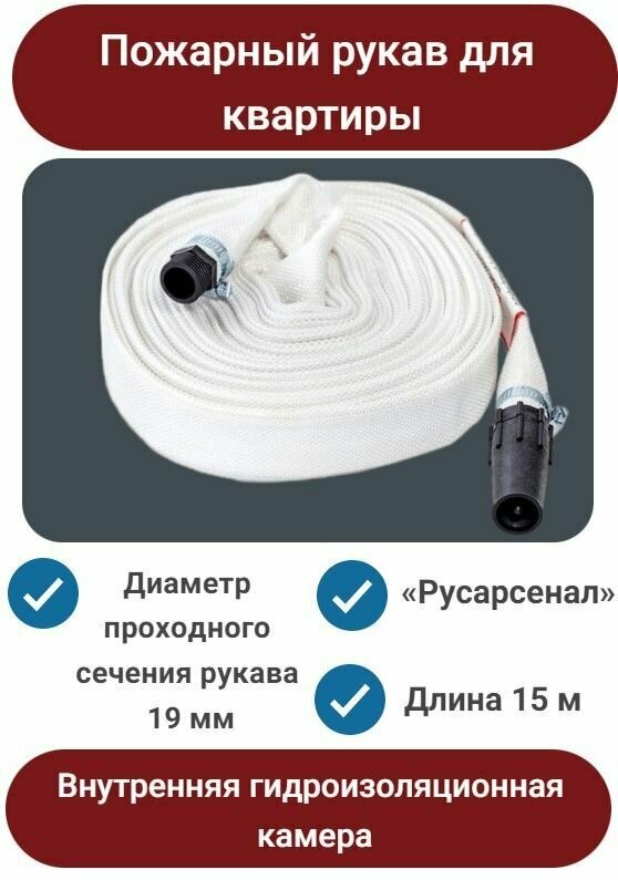Рукав пожарный для квартиры, садовый шланг, 15 м, Русарсенал, с головками интересное: