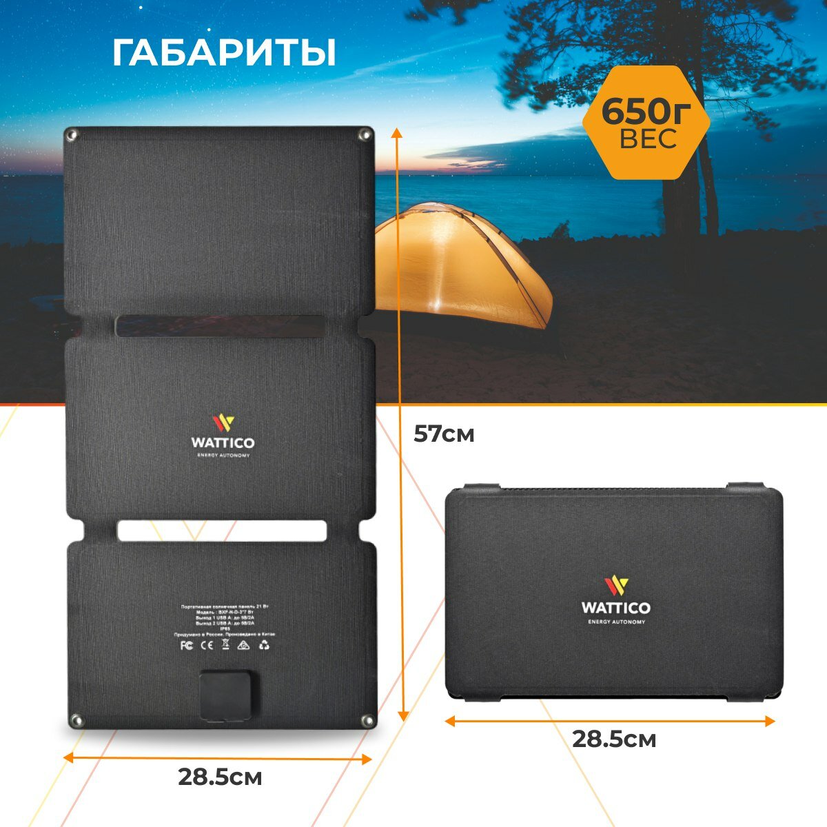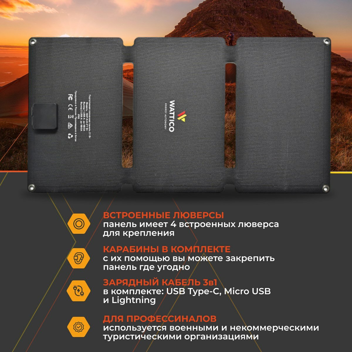 Туристическая солнечная панель Wattico Solar Travel 21 Вт для быстрой зарядки смартфона и планшета интересное: