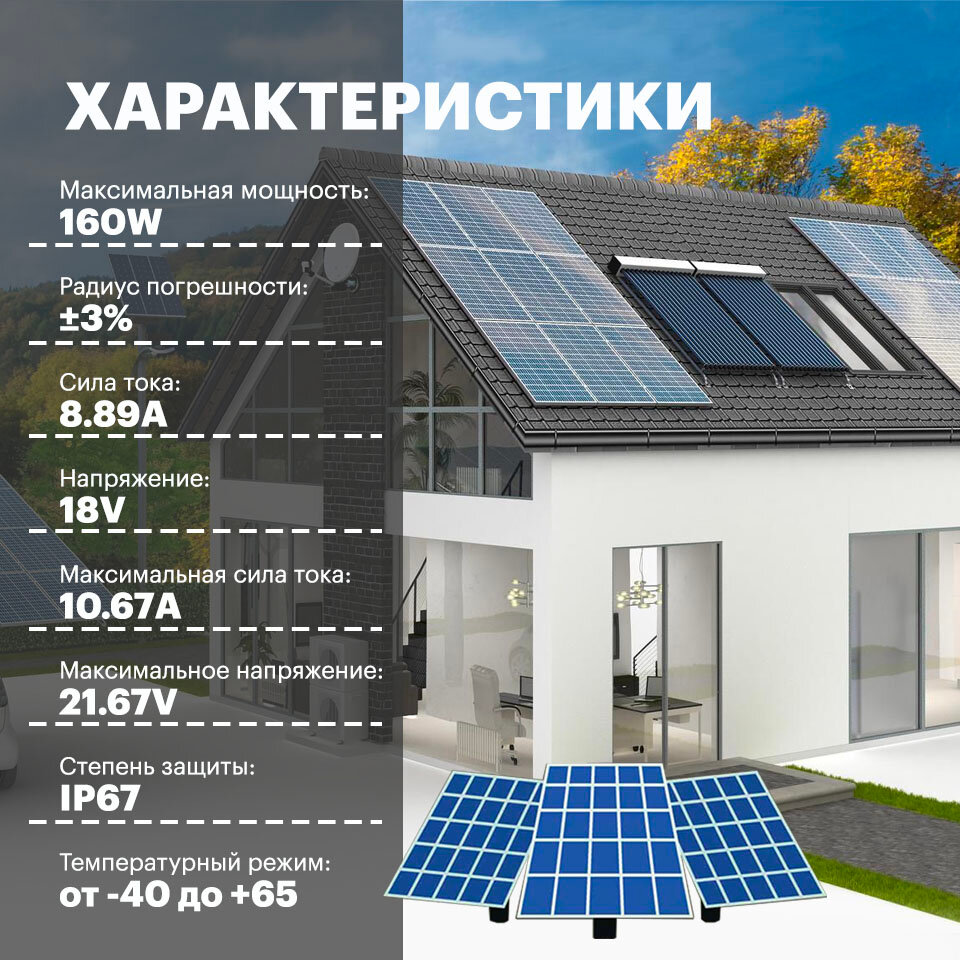| Подробная комплектация | Монокристаллическая солнечная панель (батарея) 150Вт - 1шт |
