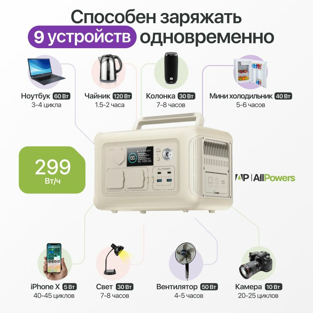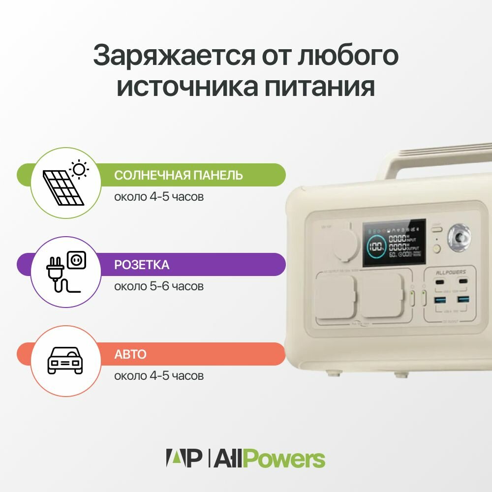 Портативная электростанция 220 в Allpowers R600 600Вт/ 81 000 мАч интересное: