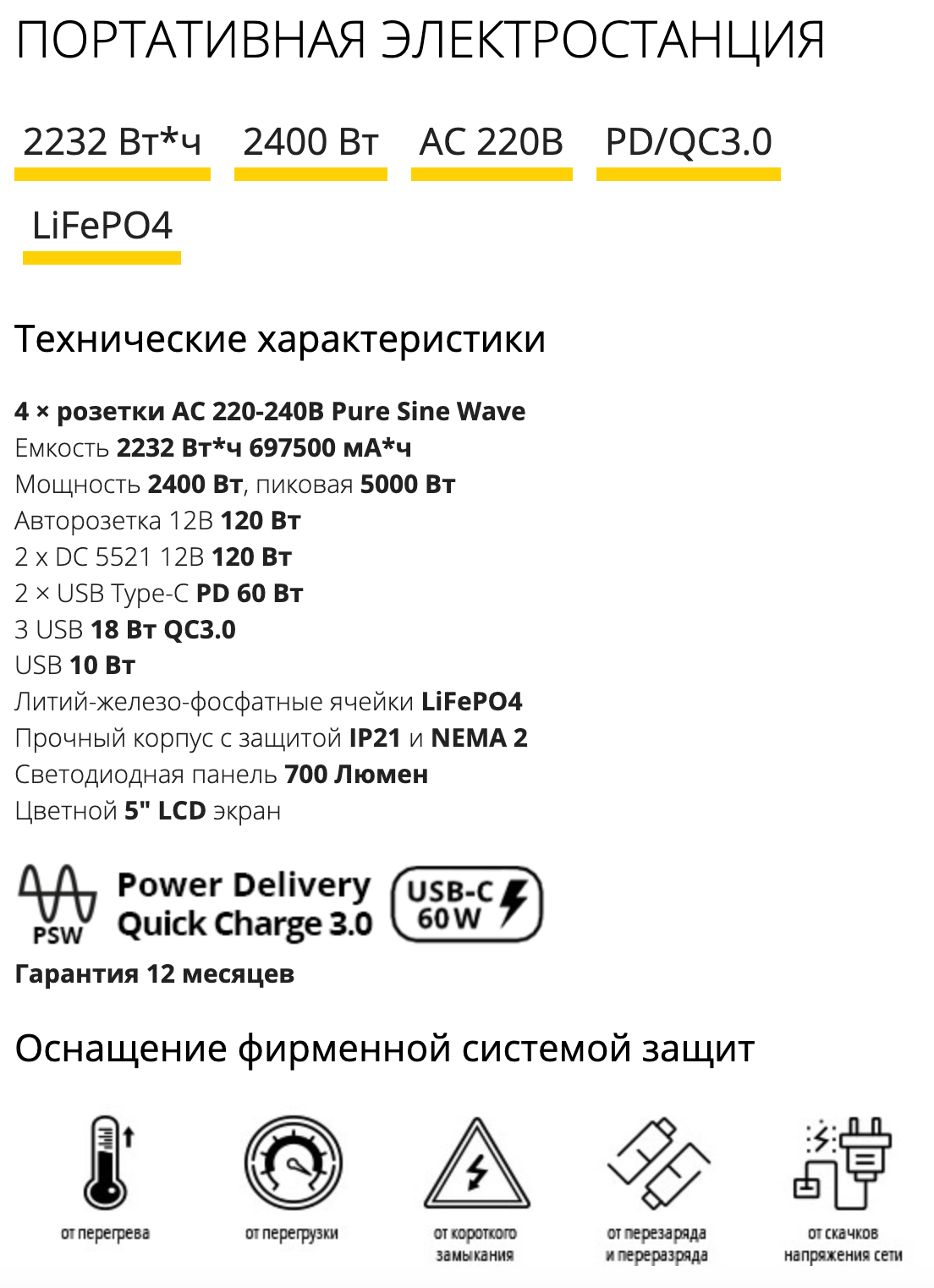 | Общая емкость аккумуляторов | 2232 А·ч |