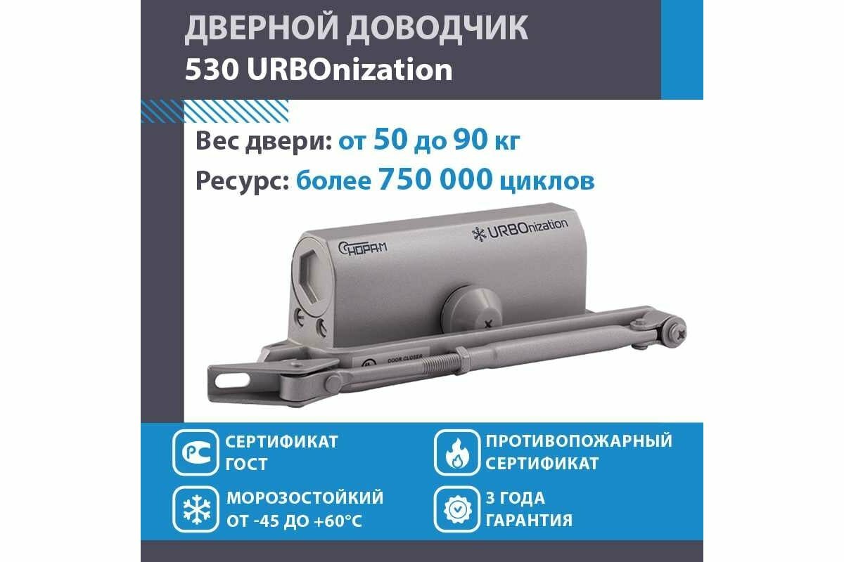 Доводчик дверной Нора-М 530 URBOnization (морозостойкий для дверей 50-90кг) - Серебро