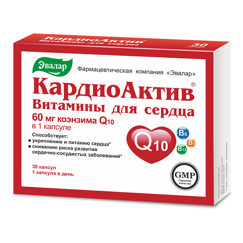 | Показания к применению | –Благодаря максимальному содержанию коэнзима Q10 – 60 мг в одной капсуле – витамины «Кардиоактив» способствуют выработке дополнительной энергии для поддержания нормальной работы сердца и замедлению процессов старения.–Помогают укрепить сердце и сосуды. |