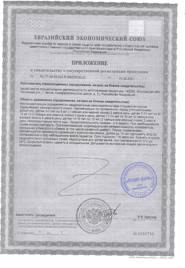 | Особые указания | Перед применением рекомендуется проконсультироваться с врачом-педиатром. Детям до 14 лет принимать БАД по согласованию и под наблюдением врача-педиатра. |