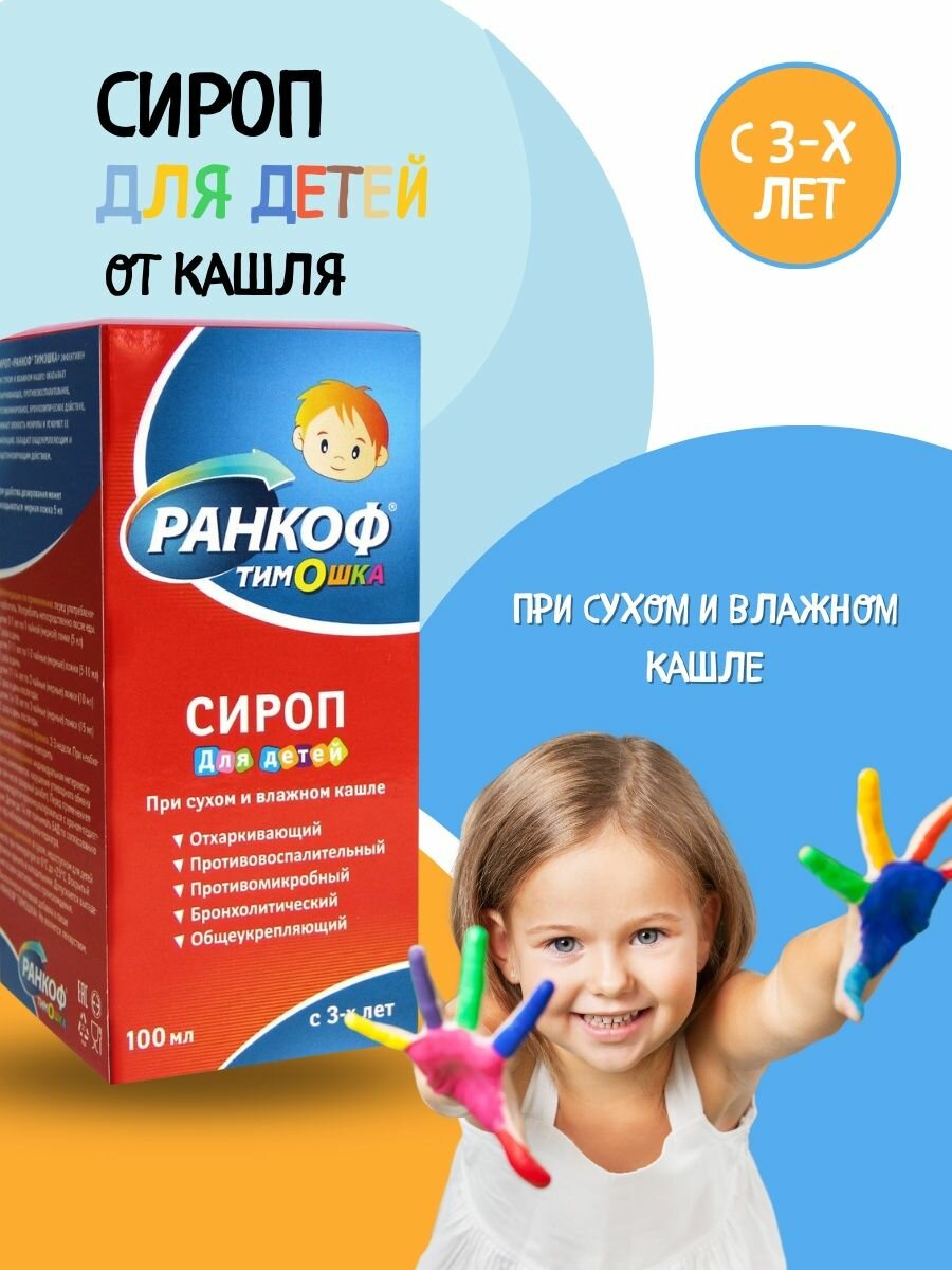 Сироп от кашля, микстура от простуды и гриппа, от сухого и влажного кашля, для детей 100 мл Ранкоф Тимошка Аптека Асна интересное: