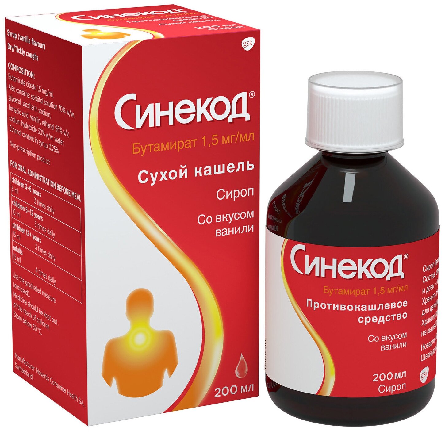 Синекод Сироп, сироп (ваниль) 1.5 мг/мл, 200 мл