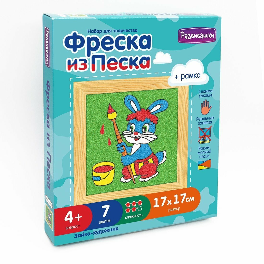 Фреска из цветного песка Зайка-художник, 17 х 17 см Развивашки С1701 интересное: