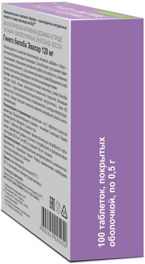 Гинкго Билоба Эвалар таблетки п/о 120мг 0,5г 100шт