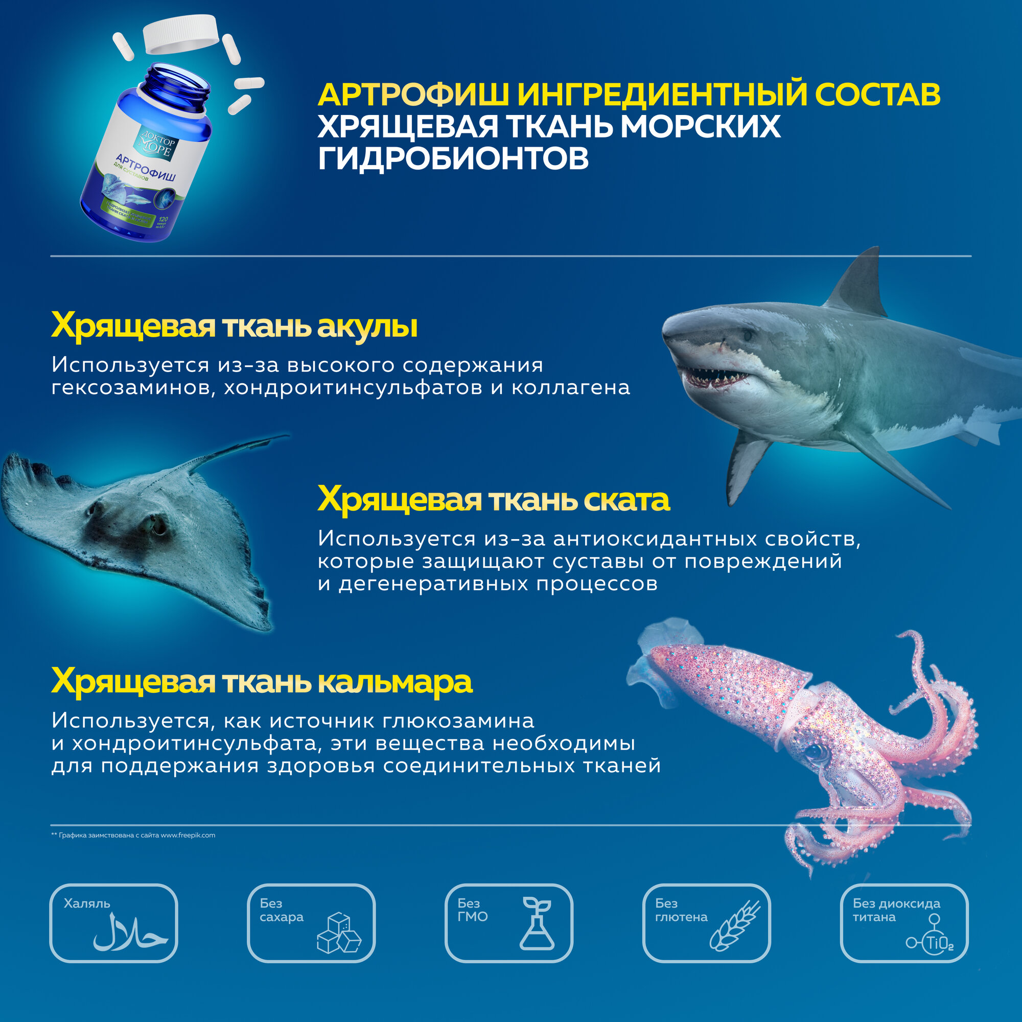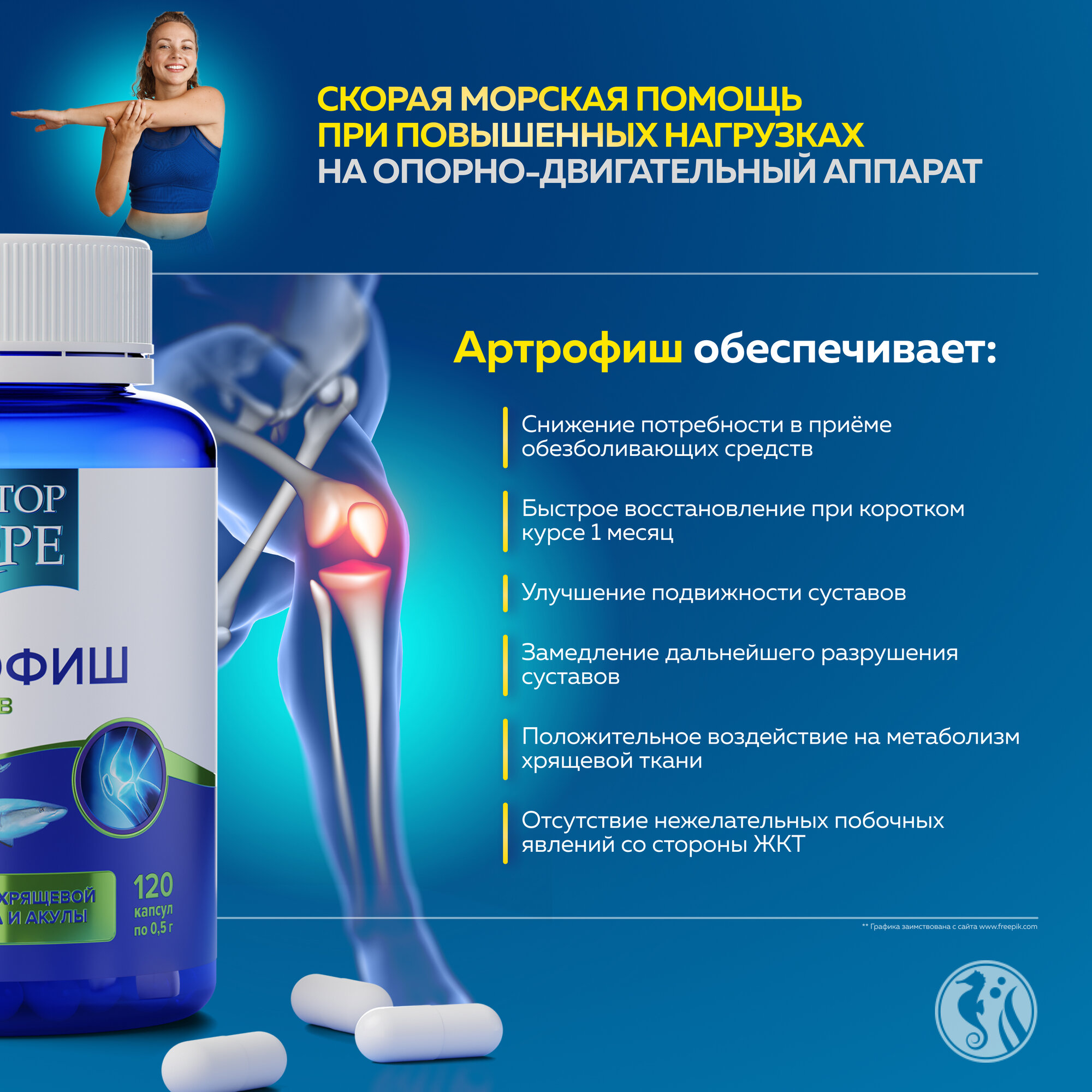 Артрофиш - Единственный морской хондропротектор для суставов и связок, 60 капсул