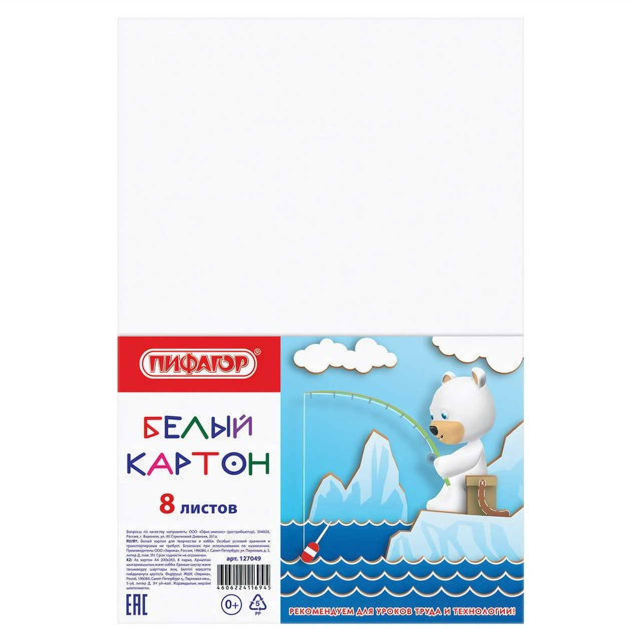 Картон белый пифагор А4 8л