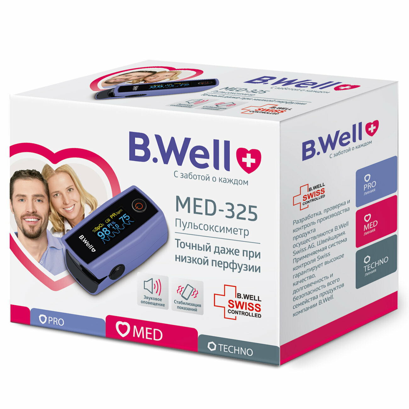 Пульсоксиметр на палец медицинский B.Well MED-325 для измерения уровня кислорода в крови и пульса