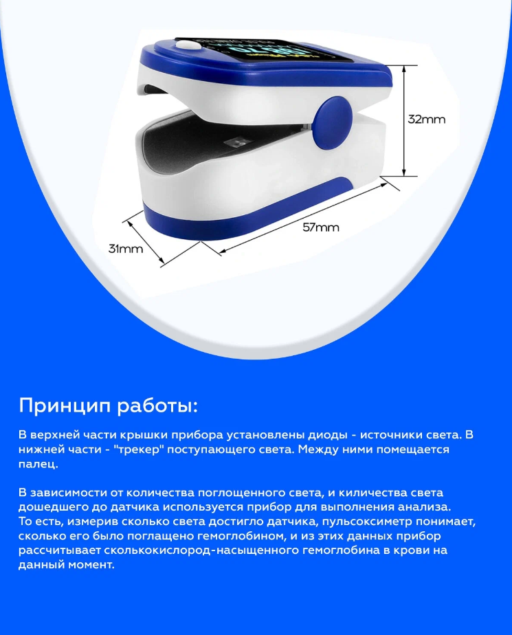 Пульсоксиметр на палец для измерения уровня кислорода и пульса в крови с цветным OLED-дисплеем + (Батарейки в подарок) интересное: