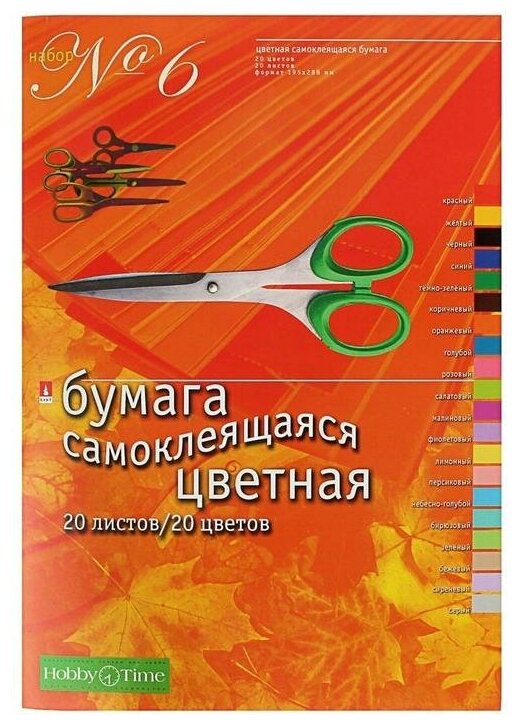 Бумага цветная самоклеящаяся Альт, набор №6 (20 листов, 20 цветов, А4) интересное: