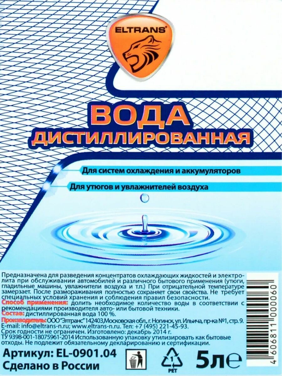 | Дополнительная информация | Дистиллированная вода ELTRANS - это прекрасный выбор! |