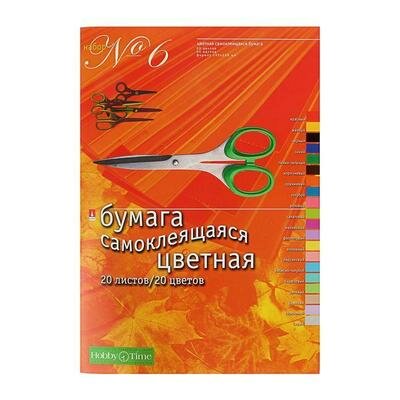 Бумага цветная 20л.20цв,А4 немелован,самоклеящаяся №6,11-420-52, 384749