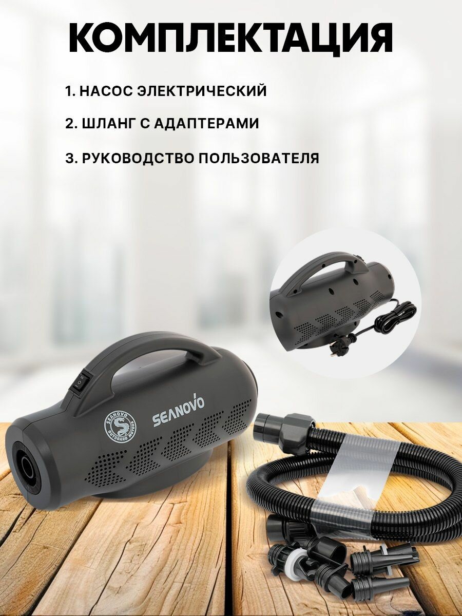 Электрический насос 220 Вольт HT-600 Seanovo TURBO MAX, 750 л/мин, 2 режима лодочный воздушный компрессор высокого давления для накачки лодки ПВХ в т.ч НДНД, РИБ, SUP-доски, байдарки, бассейна