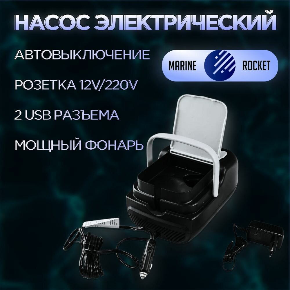 Насос аккумуляторный электрический 12 Вольт Marine Rocket AP-016B 12v для накачки лодки ПВХ