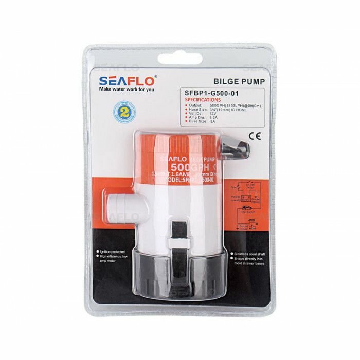 SeaFlo Помпа водооткачивающая трюмная 500 галлон/час, патрубок 19 мм, 12V (Артикул: ) SFBP1-G500-01 интересное:
