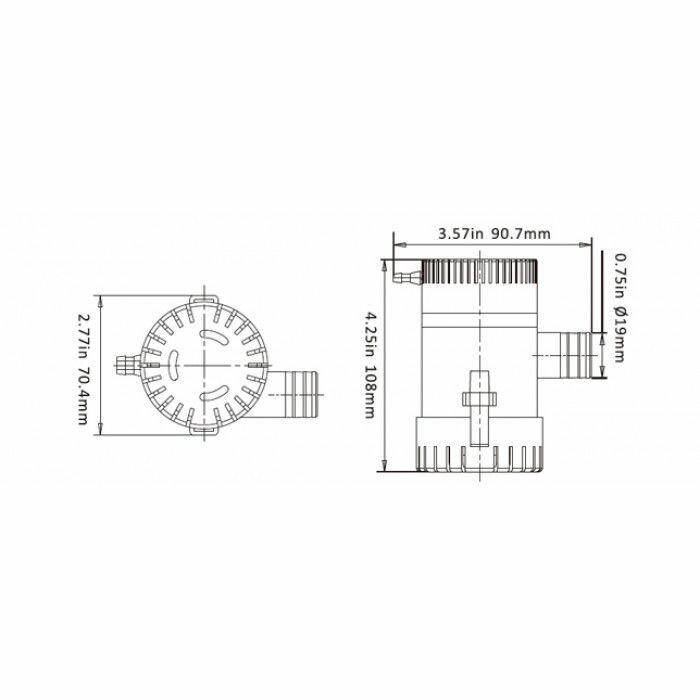 Помпа водооткачивающая SeaFlo трюмная 750 галлон/час, патрубок 19 мм, 12V