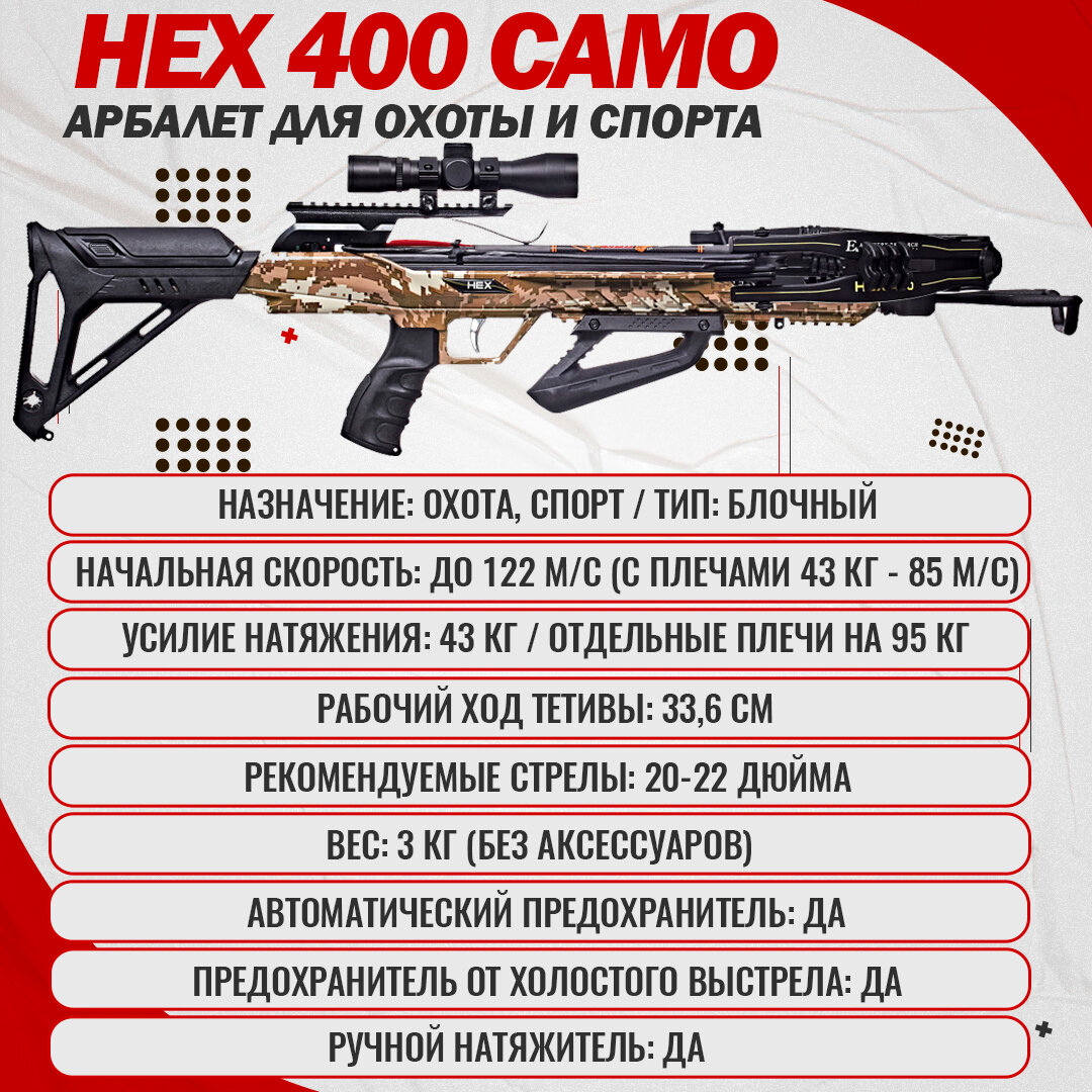 СохранитьАрбалет блочный Ek HEX-400 камуфляж (c комплектацией) интересное: