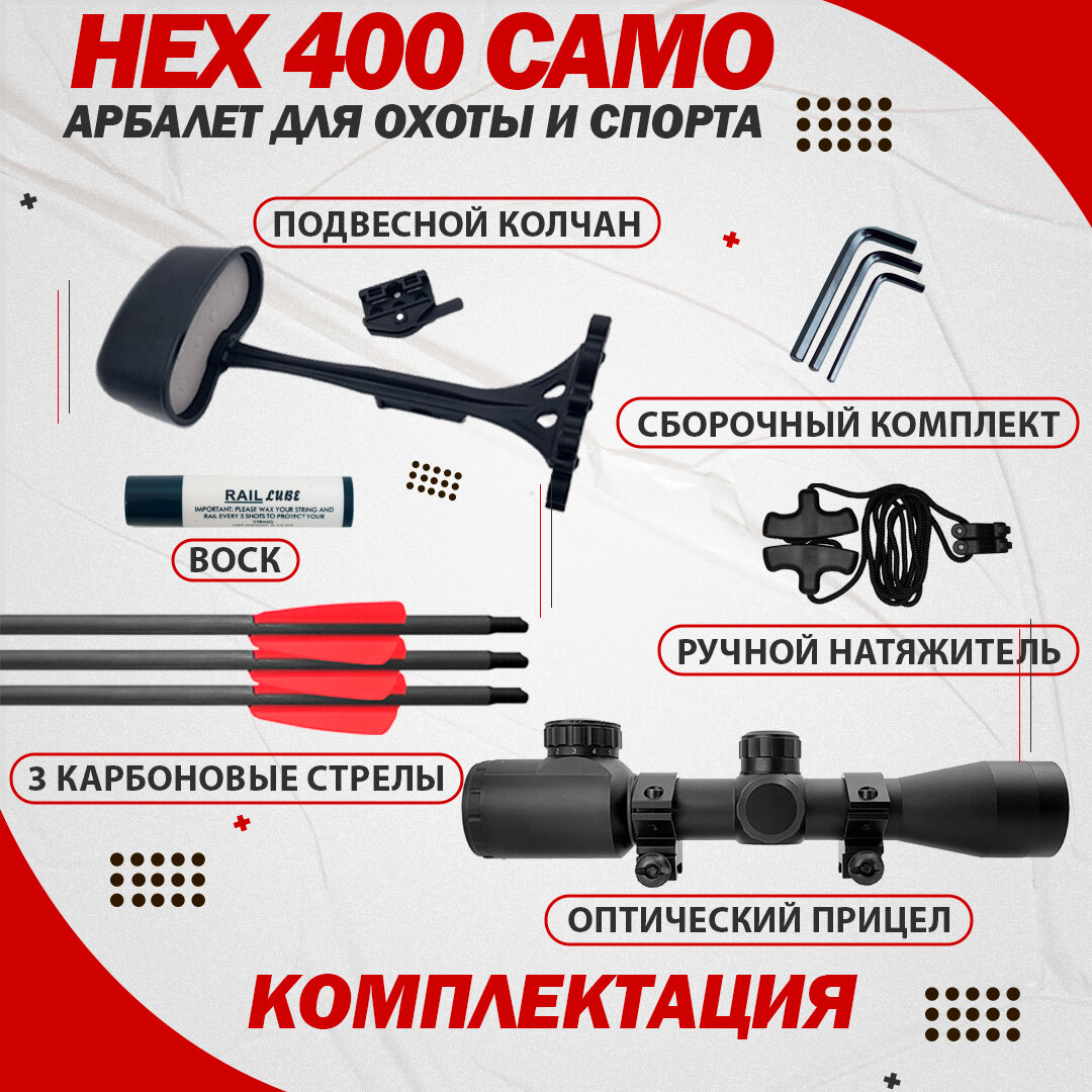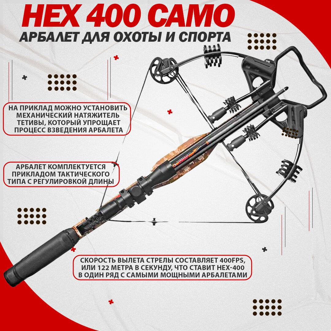 Арбалет EK Archery HEX-400 камуфляж, блочный, в полной комплектации