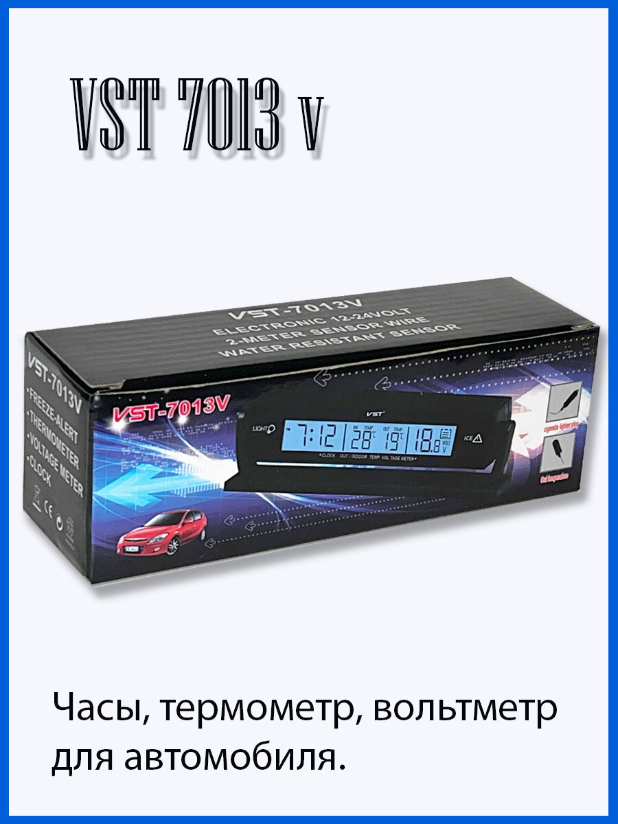 Купить Часы автомобильные VST 7013V в прикурив. вольтметр, 2 термометра