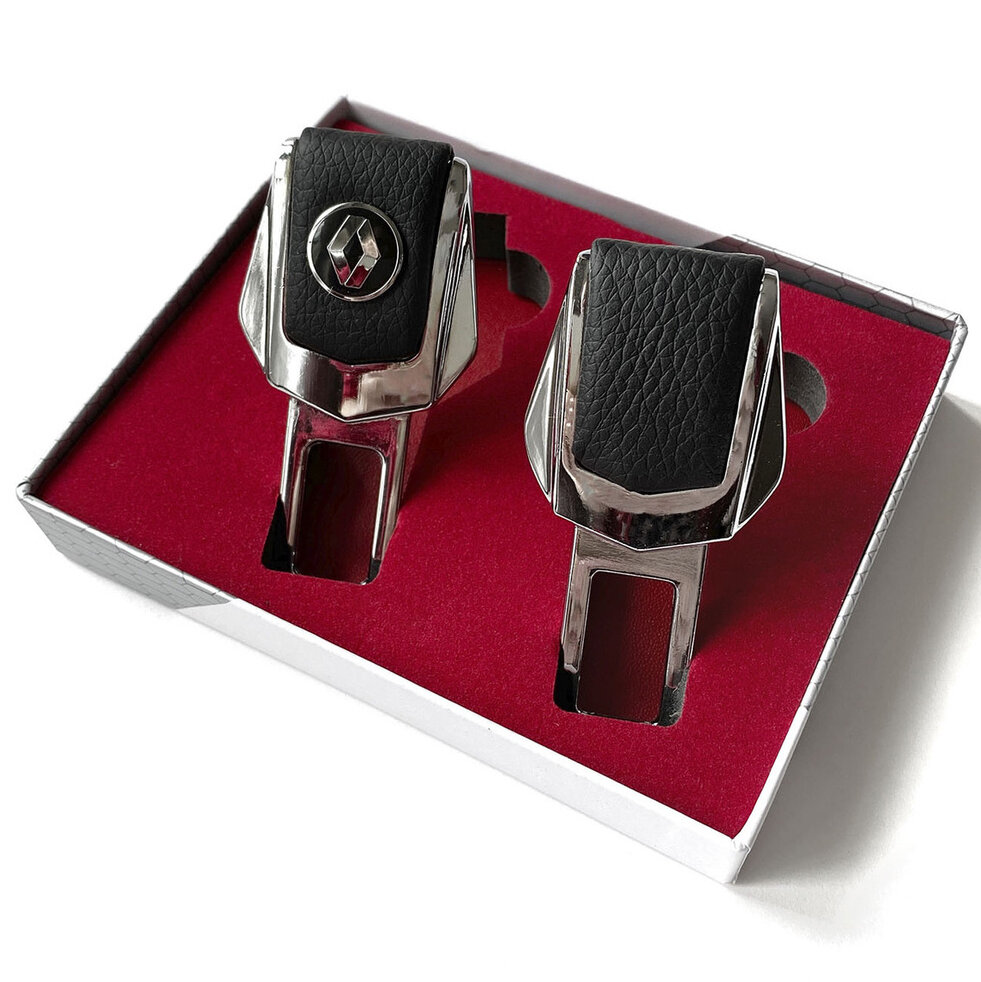 Заглушки ремней безопасности для "Renault" (Рено). Натуральная кожа и хромированный металл. В подарочной упаковке, комплект из 2 штук.