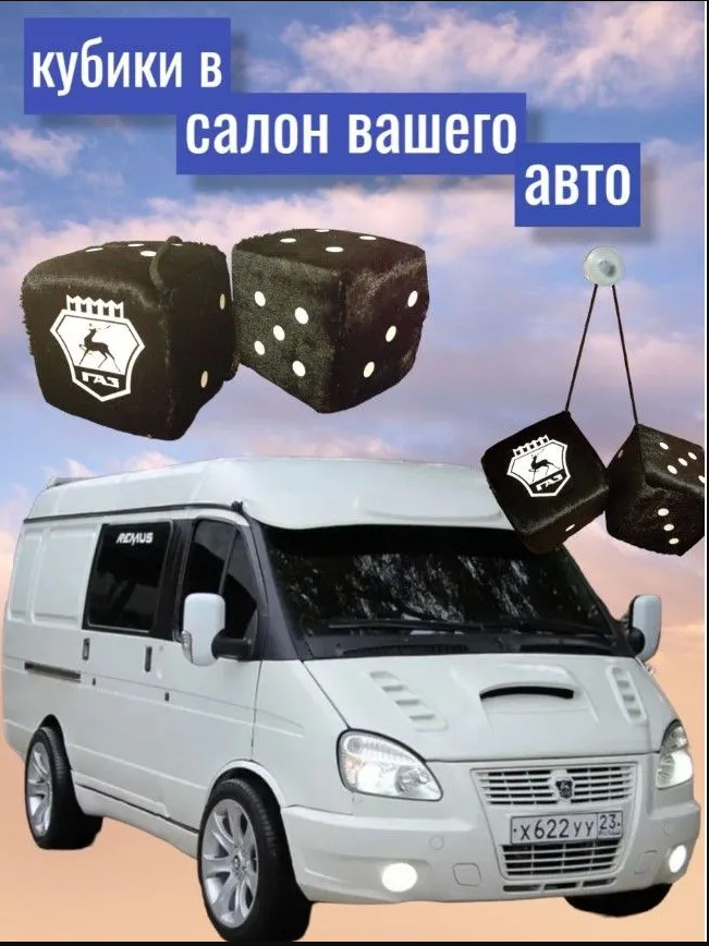 СохранитьИгрушка плюшевая на присоске Кубики-кости в салон автомобиля на стекло GAZ, ГАЗель, ГАЗ, подарок черные 8 см на 8 см интересное: