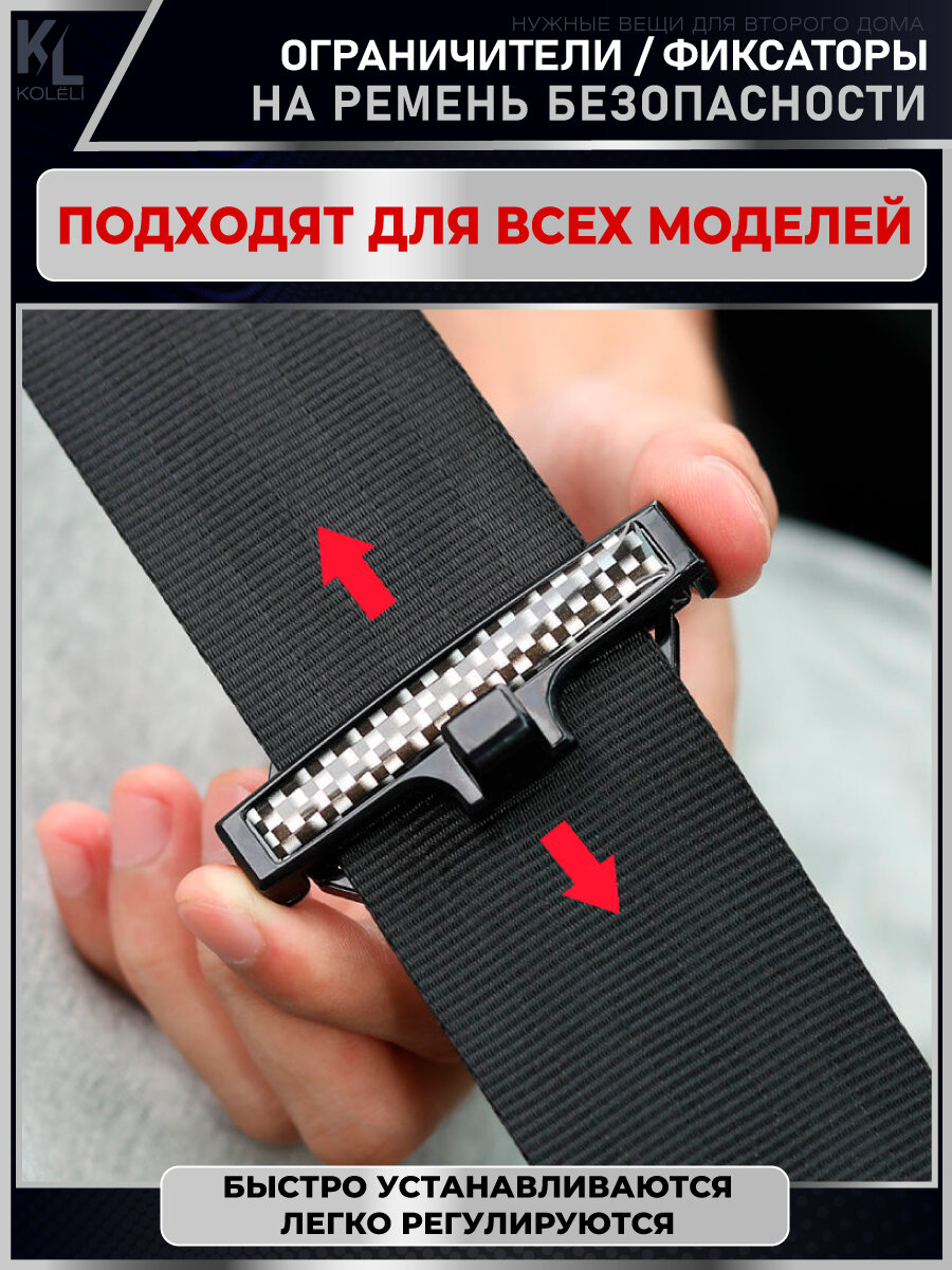 KoLeli / Фиксатор ремня безопасности / Адаптер / Ограничители натяжения ремней, черные, 2 шт.