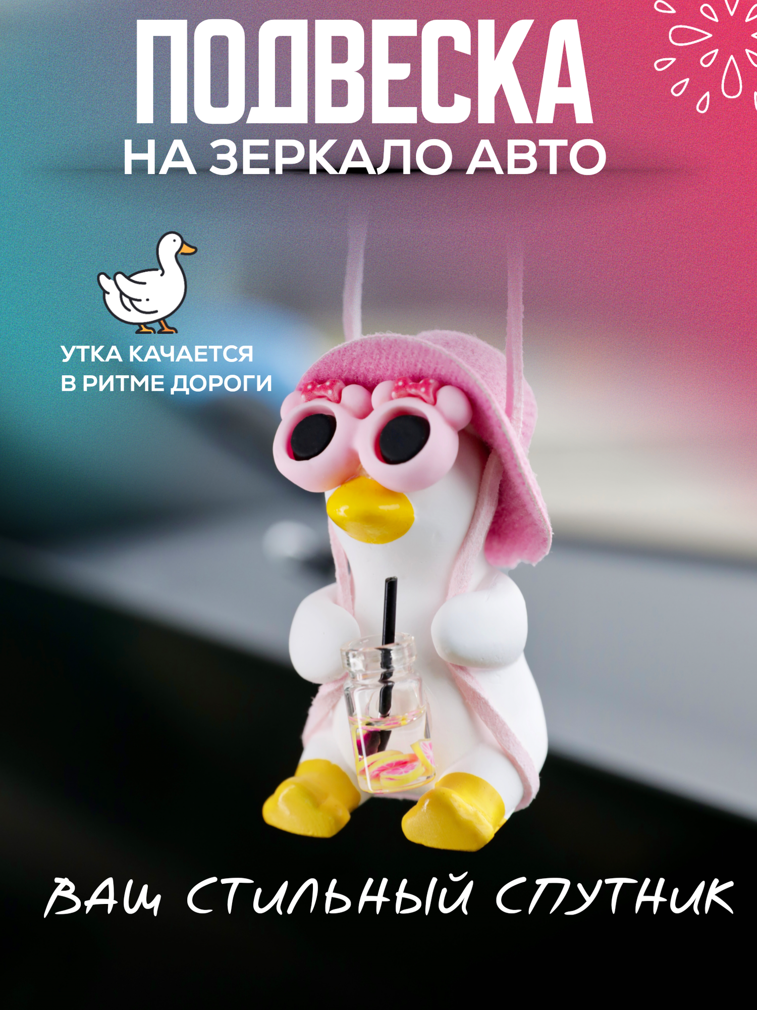В машину " Утка с очками " - игрушка для обустройства салона автомобиля