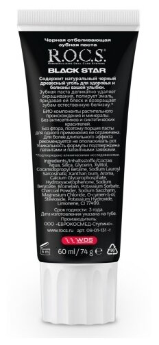 ROCS Зубная паста черная Отбеливающая c древесным углем Black Star by Тимати 74 гр