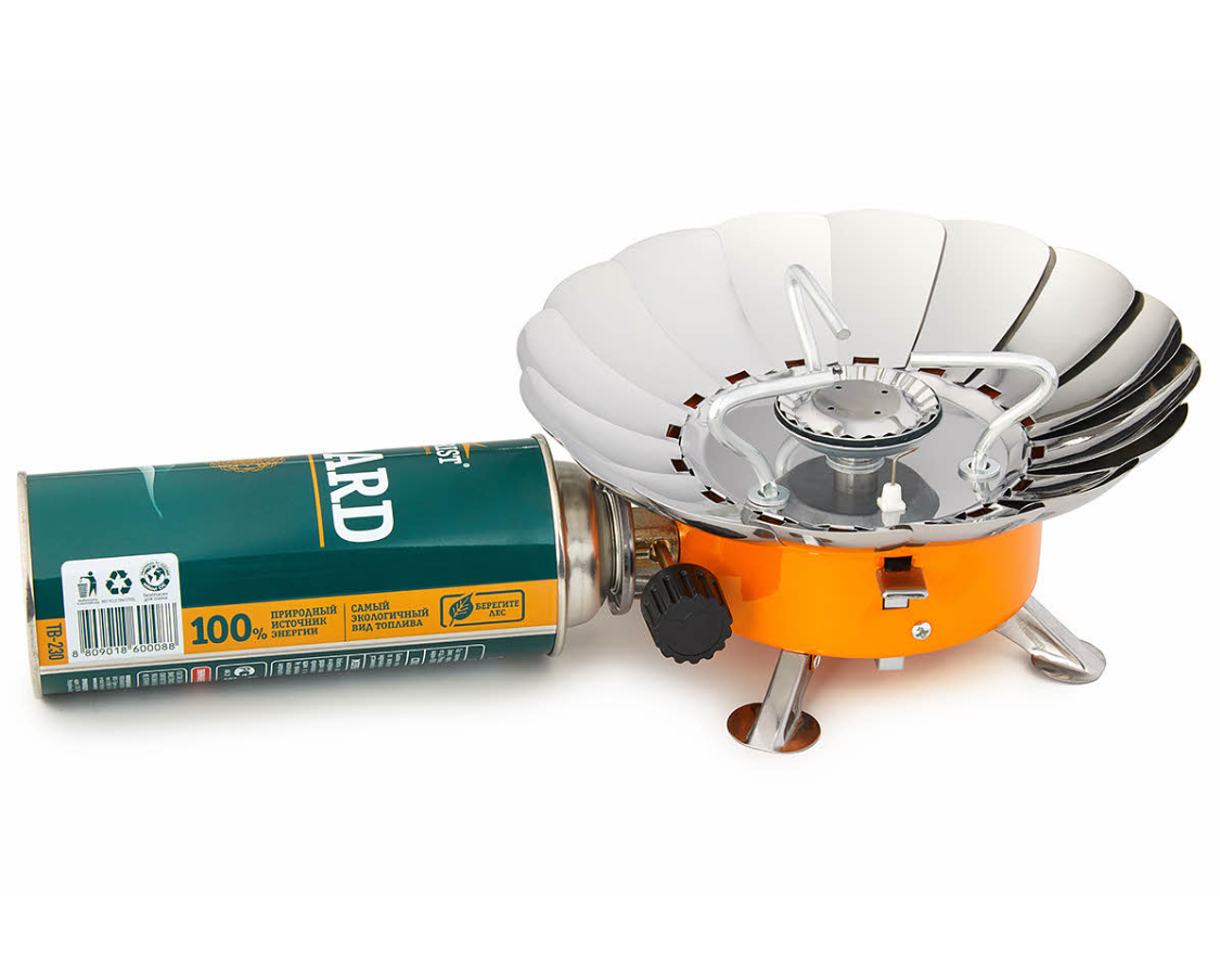 | Плюсы: | Неплохая горелка, лепестки спасают от не ветра, можно их регулировать в зависимости от размера кастрюли / сковородки. |