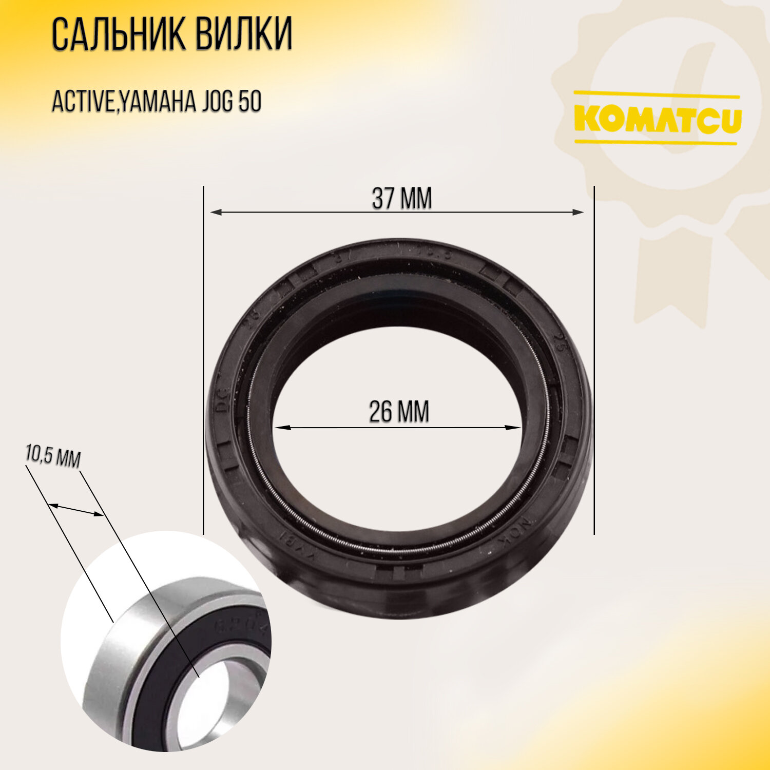 Сальник вилки Active, Yamaha JOG 50 (26*37*10,5) "KOMATCU" (mod.A) интересное: