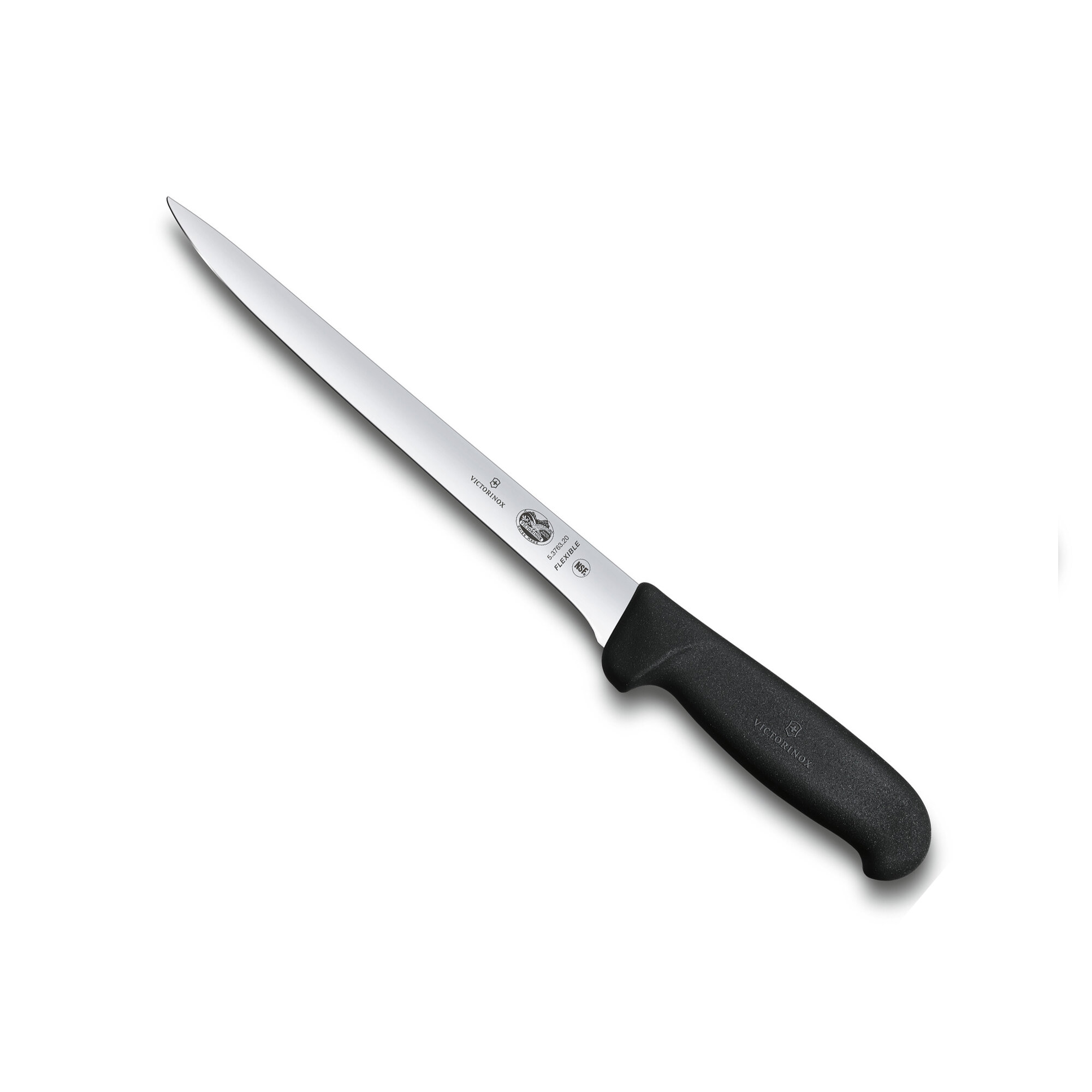 Нож филейный VICTORINOX Fibrox с гибким изогнутым лезвием 20 см, черный 5.3763.20