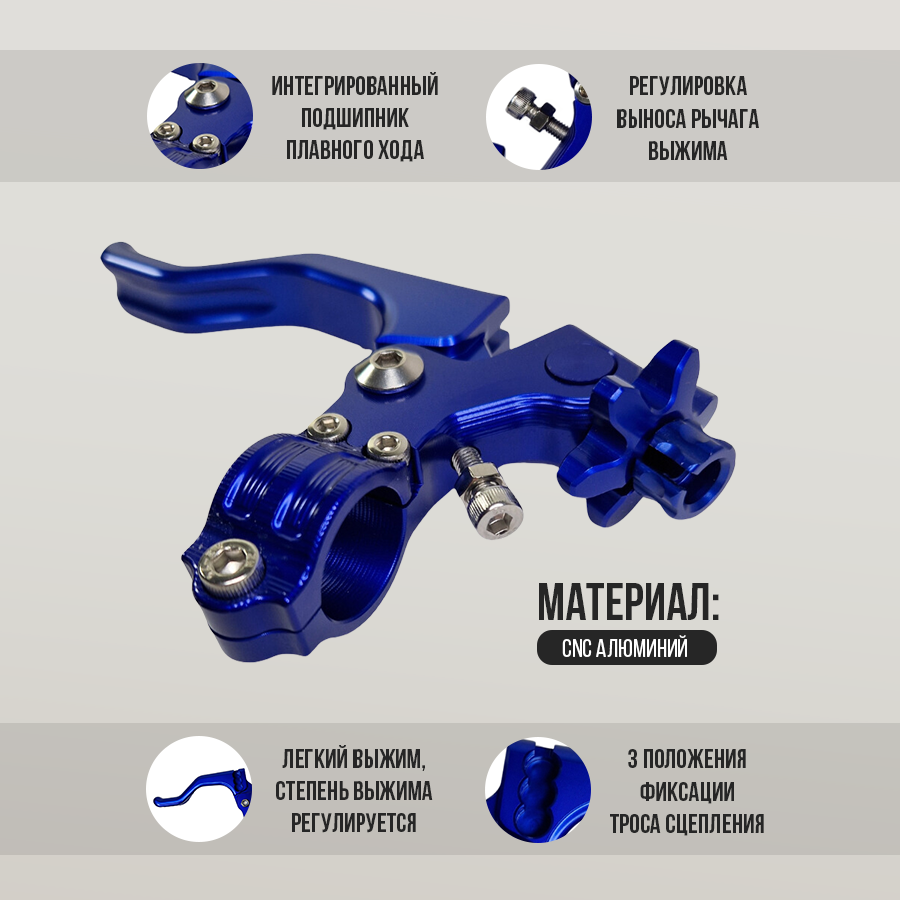 Купить Универсальный рычаг сцепления 22мм под один палец с регулировкой легкого выжима для эндуро и кроссовых мотоциклов, синий