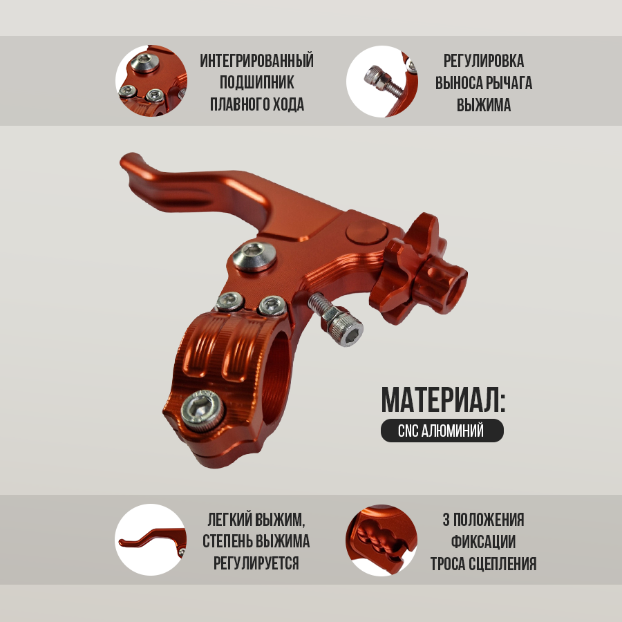 Купить Универсальный рычаг сцепления 22мм под один палец с регулировкой легкого выжима для эндуро и кроссовых мотоциклов, оранжевый