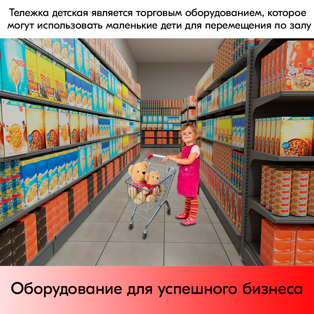 Тележка покупательская 25л детская, пластик красный, ручка белая интересное: