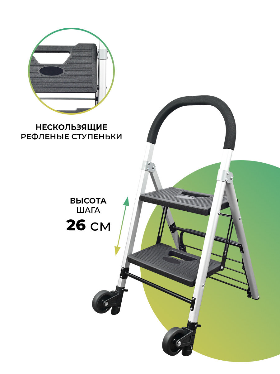 Купить Тележка грузовая складская со стремянкой 2 ступени для выкладки товара 60/130 кг для магазинов и супермаркетов