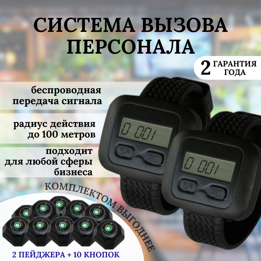 Комплект вызова персонала №6 (2 пейджера персонала +10 кнопок вызова) интересное: