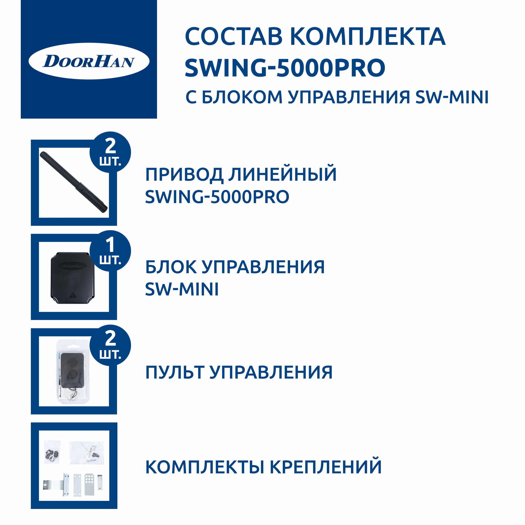 | Подробная комплектация | Комплект крепления привода - 1 шт.; Привод Swing-3000PRO - 1 шт.; Документация |