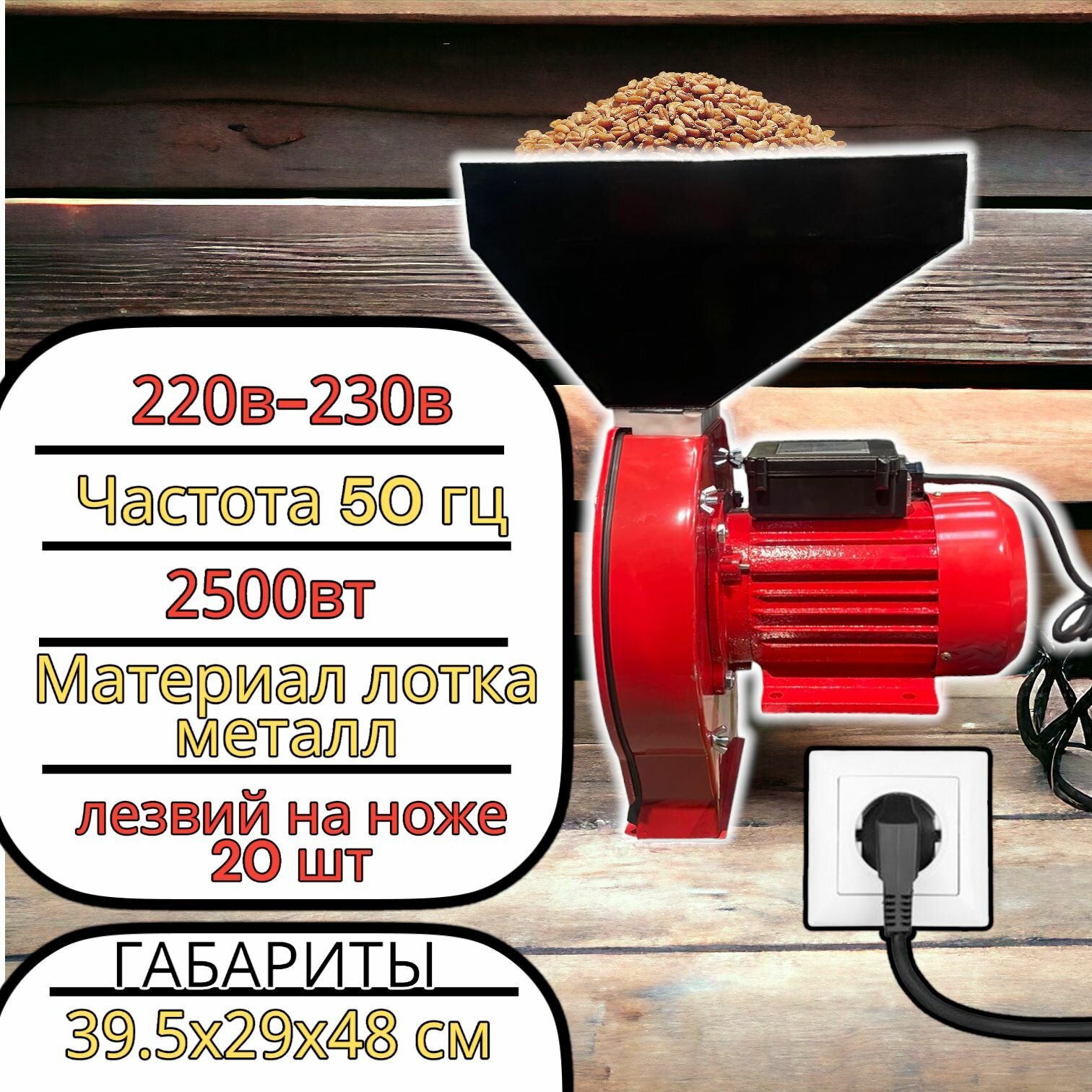 Кормоизмельчитель электрический Brait СМ2500-G / Дробилка молотковая / Зернодробилка для домашнего хозяйства