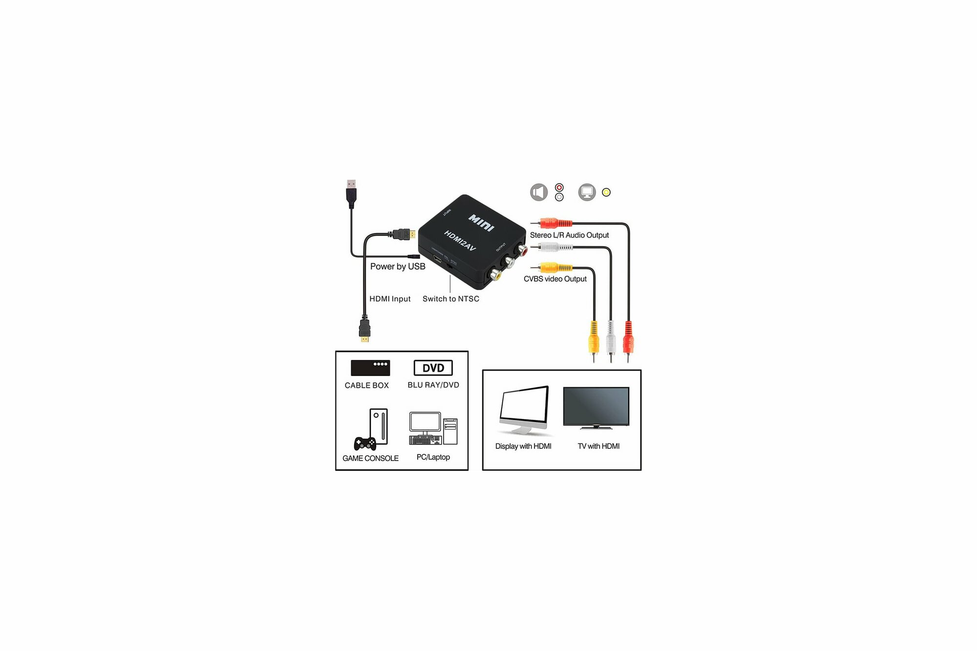 Купить Конвертер PALMEXX HDMI - AV (RCA), чёрный