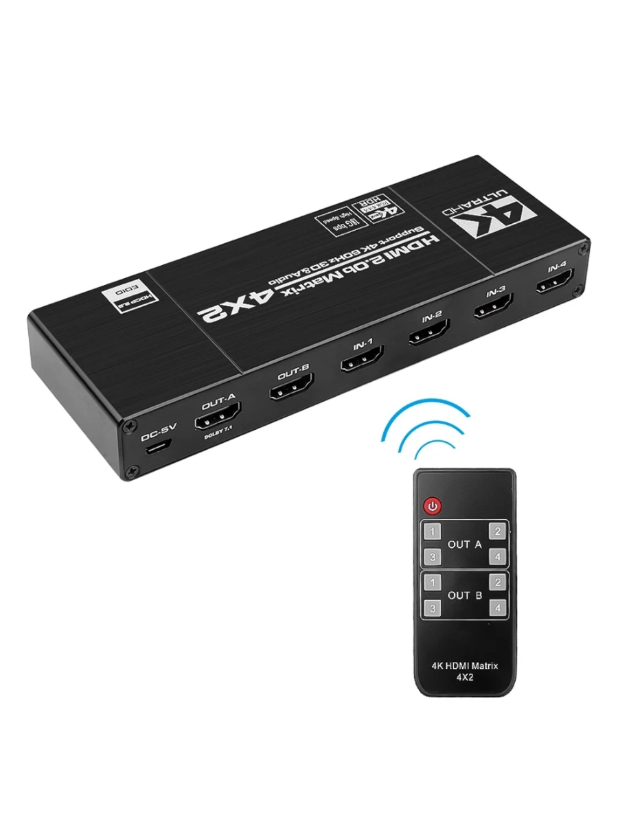 Ниже Вы можете прочитать отзывы на Матричный коммутатор (сплиттер свитчер) HDMI 4 входа 2 выхода 4K 60 Гц с двумя оптическими выходами Toslink (S/PDIF) и 3,5 jack, ознакомится с подробными характеристиками, посмотреть интересные обзоры и фотографии на Матричный коммутатор (сплиттер свитчер) HDMI 4 входа 2 выхода 4K 60 Гц с двумя оптическими выходами Toslink (S/PDIF) и 3,5 jack.