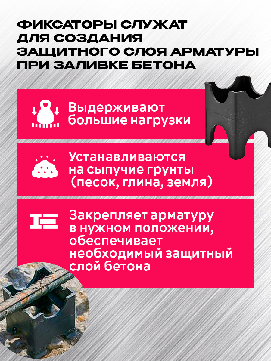 Фиксатор арматуры "Звездочка" (50 шт, защитный радиус 25 мм, диаметр арматуры от 6 до 20 мм)
