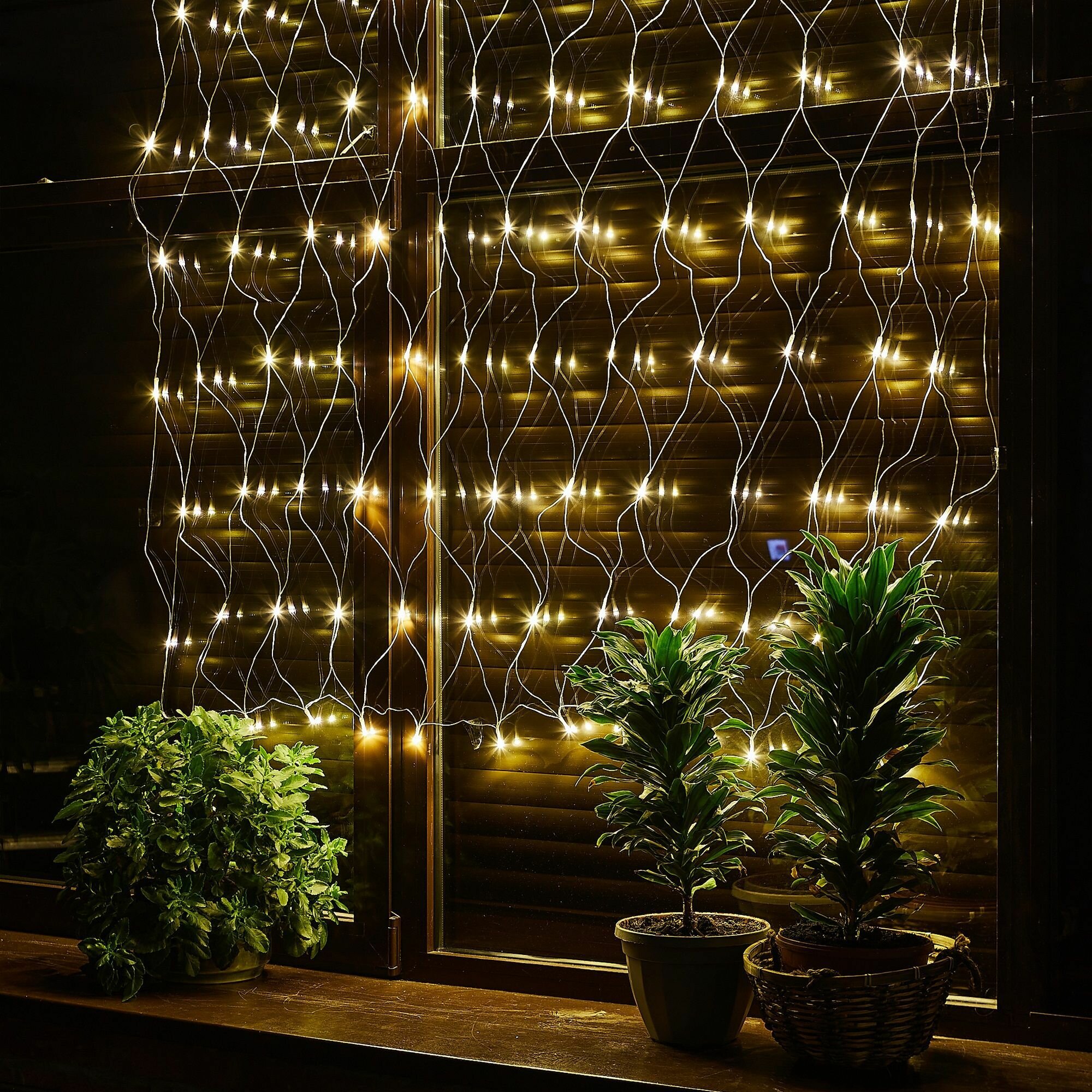 Сетка светодиодная Uniel Uld-n1515-96/ttk Warm White IP44 с эффектом мерцания, 1,5х1,5м. Соединяемая