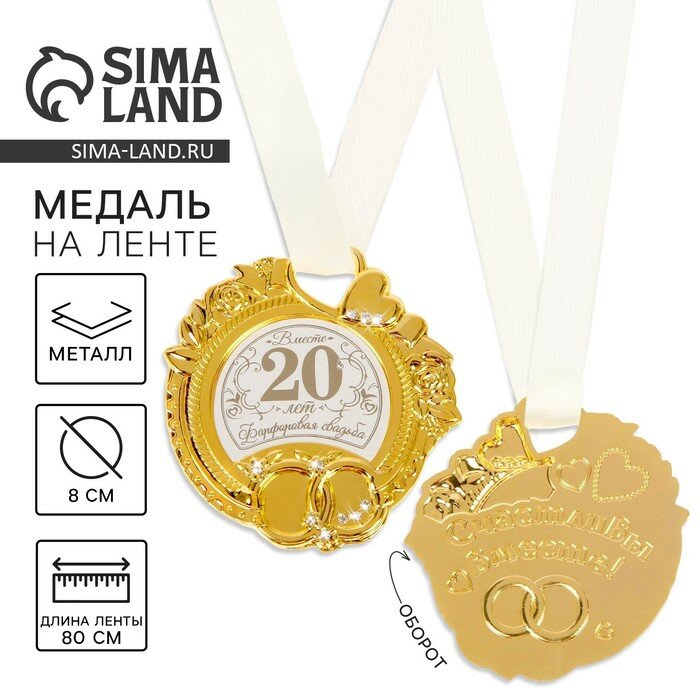 Купить Сима-ленд Медаль свадебная на открытке «Фарфоровая свадьба», 8,5 х 8 см