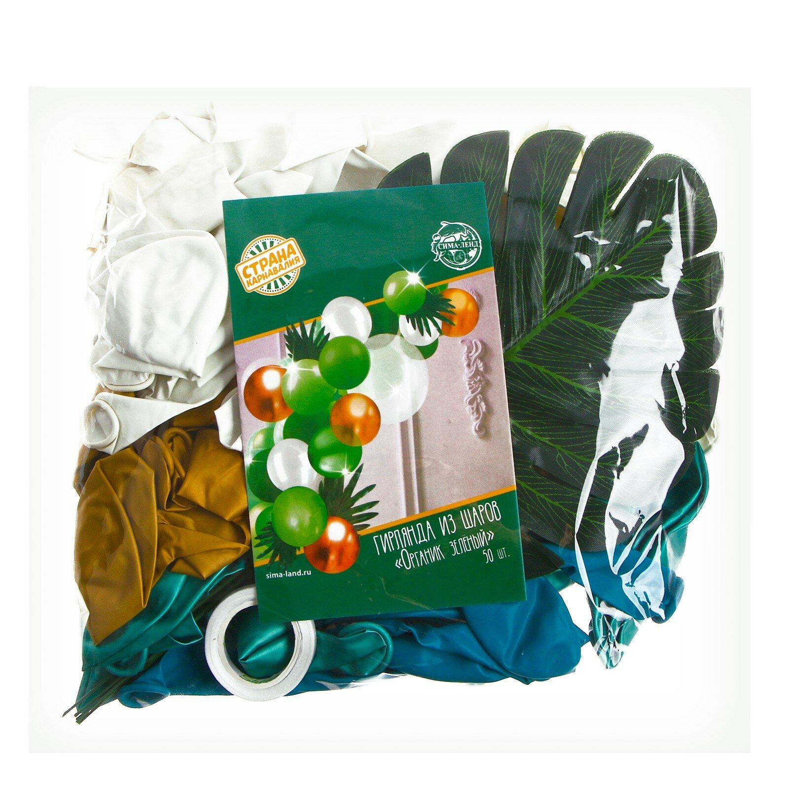Гирлянда из воздушных шаров Страна Карнавалия "Органик зеленый", длина 2 м, с листьями
