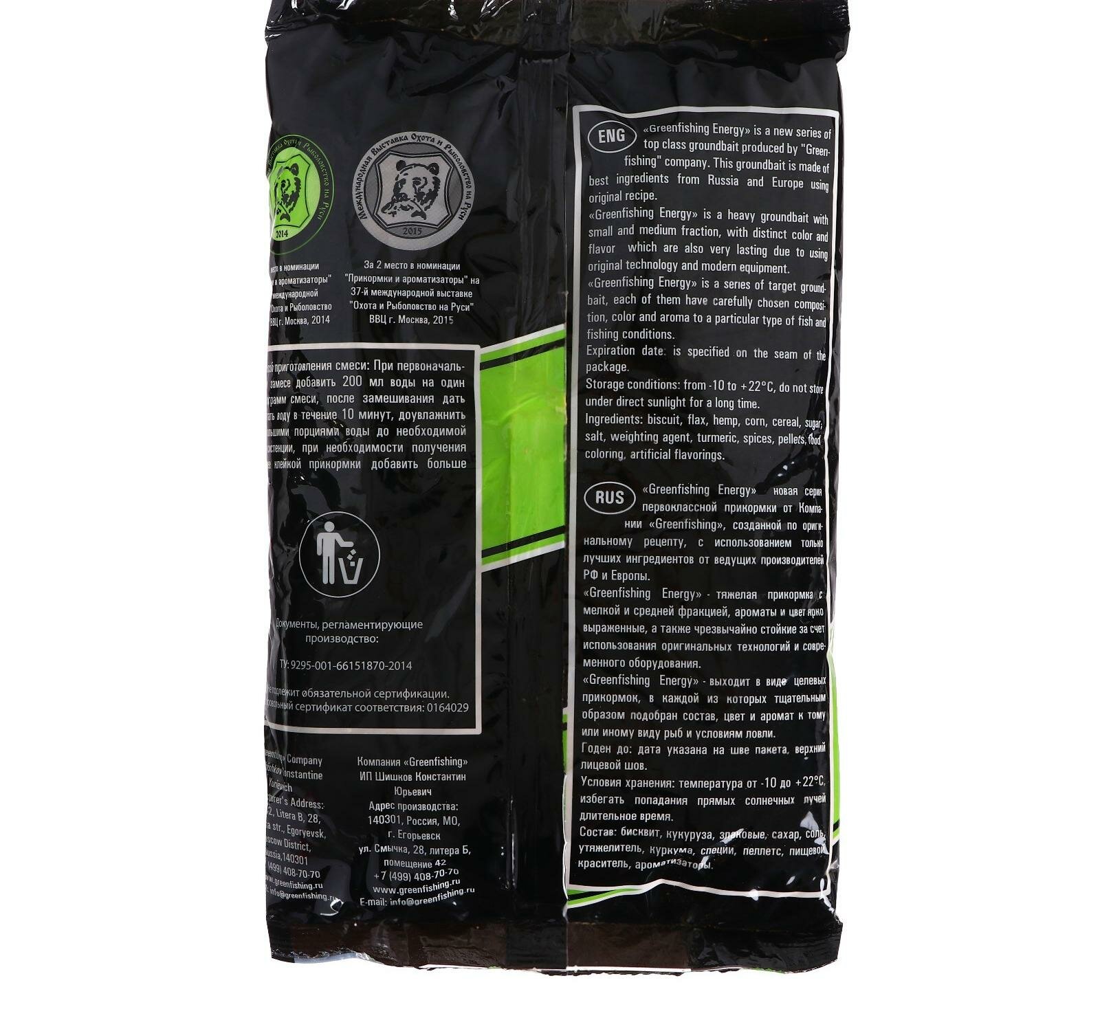 Прикормка Greenfishing Energy, карп, 1 кг